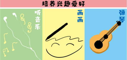 或者培养一些兴趣爱好,比如听歌、写字、画画、学乐器等休闲活动。