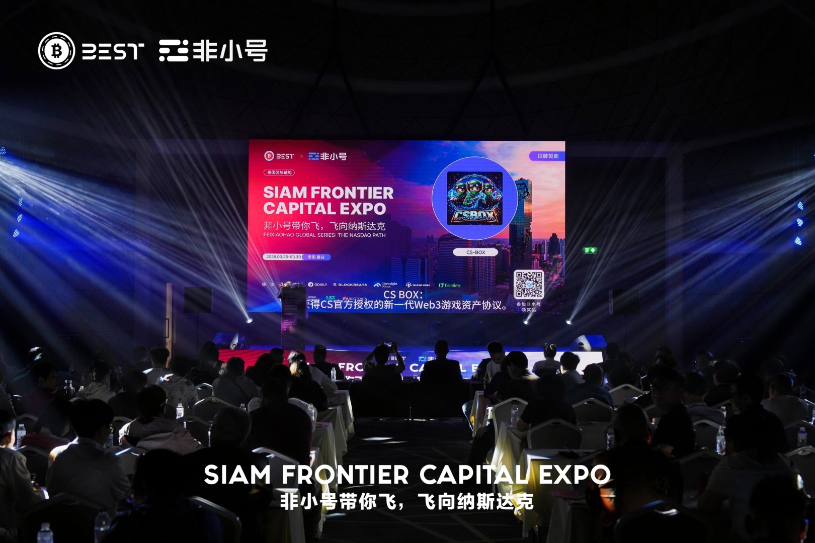 作为银牌赞助商,CSBOX深度参与本届盛会。本次峰会由BEST与非小号(Feixiaohao.ai)联合主办,是2026泰国区块链周(3月25日至30日)的核心主会场活动。